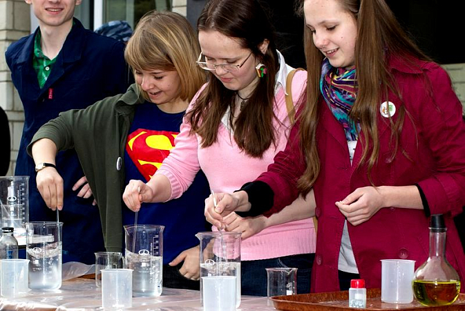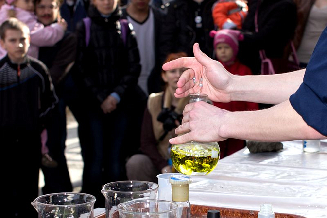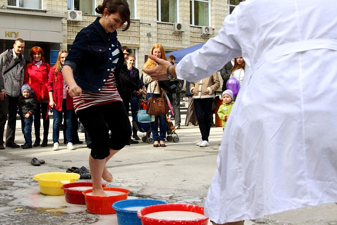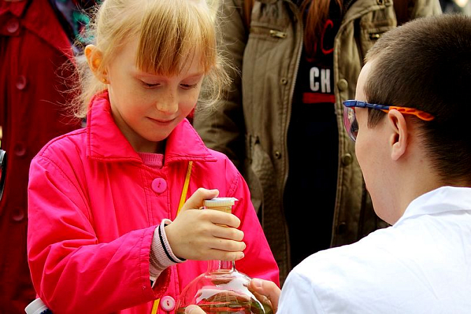 May 24, the square in front of the main building hosted experiments and tests anybody could take part in, regardless of how complex they were! The guests of the chemical fair painted with invisible paints, got false wounds on their bodies with alcohol and iodine, walked on water. The secrets of all the experiments were disclosed by the students of the Natural Science Department.