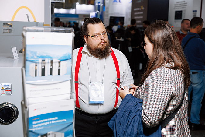 Особый интерес посетителей выставки привлекли продемонстрированные в рабочем режиме испытательные камеры: настольная климатическая камера ST-22-40Н и климатическая камера сверхнизкой температуры SUT-64-85; а также течеискатель гелиевый EVP NHJ400.